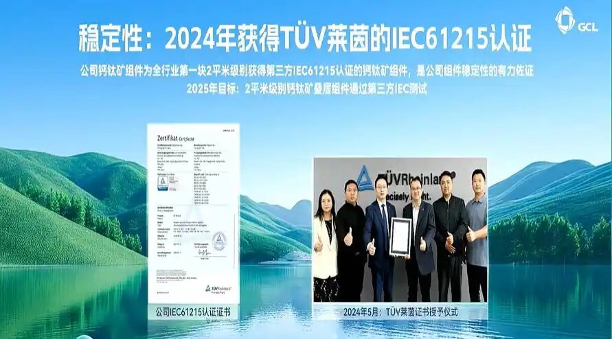 2024年,协鑫光电的钙钛矿组件,成为全行业第一块2平米级别获得第三方IEC61215认证的钙钛矿组件。这意味着现在,即使以现在晶硅组件标准的加速老化测试,钙钛矿也已经全部通过!
