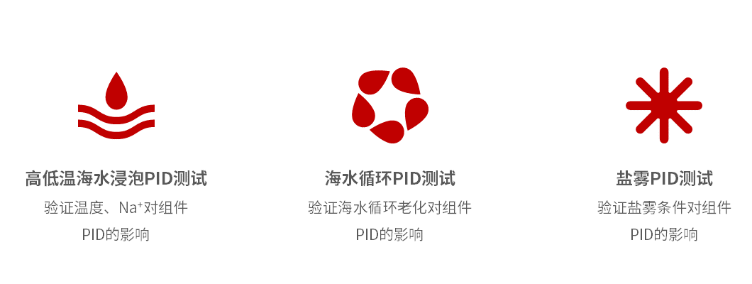 除了组件BOM优化,阿特斯还创新性地开发了一系列加严的可靠性测试序列。以PID测试为例,阿特斯通过模拟海洋高温高湿及腐蚀环境,开发了海水浸泡、海水循环以及盐雾腐蚀等多种条件下的加严PID测试,全方面验证海上环境下组件抗PID性能,为海上光伏组件选材及设计提供充分保障。