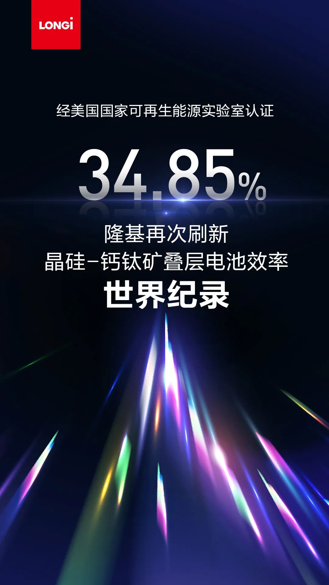 34.85%效率!隆基领跑全球叠层电池技术竞赛