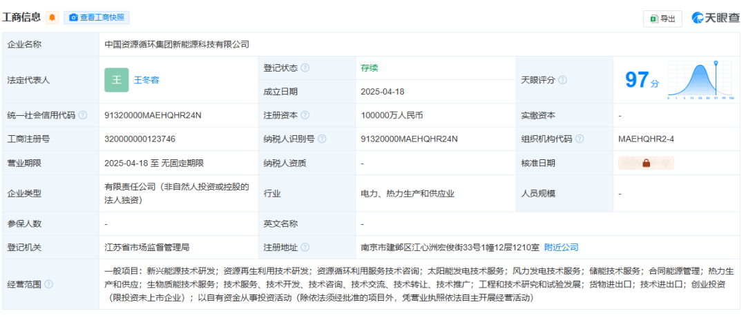 来源:中国资源循环集团微信公众号、天眼查