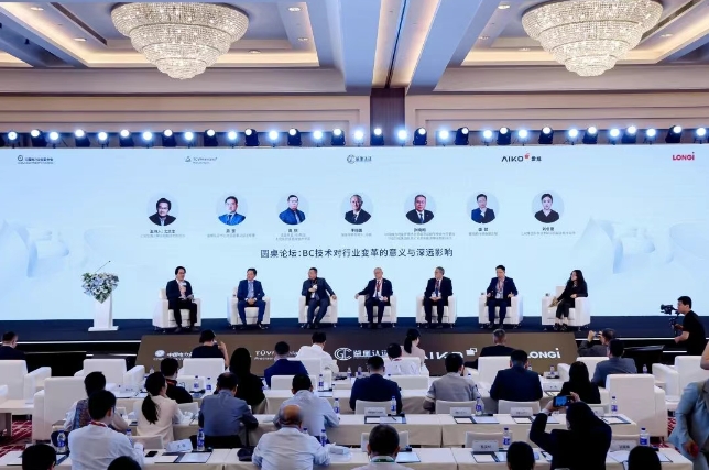 圆桌对话环节,隆基绿能创始人、总裁李振国,上海交通大学太阳能研究所所长、教授沈文忠,中国华能集团有限公司原新能源事业部副主任张晓朝,德国莱茵TÜV集团太阳能服务首席技术专家高祺博士,鉴衡认证中心太阳能事业部总经理周罡,爱旭股份高级副总裁盛健,三峡集团科学技术研究院副主任专业师刘冬雪就BC技术白皮书发布的意义、BC技术变革核心突破与挑战等议题进行了分享与展望。各方一致认为BC已成为单结硅电池技术高地,BC电池作为单结硅太阳能电池的终极技术已经成熟,势必将引领未来电池技术的创新研究和产业的健康发展。
