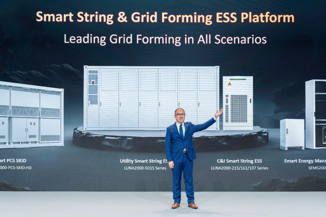 华为数字能源构网型储能领域总裁郑越发布了新一代全场景智能组串式构网型储能平台,包含电站和工商业智能组串式构网型储能新品。针对目前高比例可再生能源对电网稳定性带来的挑战、储能安全等行业普遍面临的问题,华为以全场景构网、从芯到网安全、全生命周期经济、全链路数字化的智能组串式构网型储能平台,定义构网能力的黄金标准:构网型储能应具备贯穿电力系统发输配用全场景、全工况、全生命周期的构网能力。