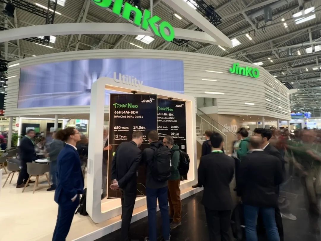作为全球最盛大的光伏展会之一,本次展会吸引了来自各国的投资商、开发商、分销商、金融机构和媒体等齐聚一堂,晶科展台人头攒动,人气爆棚。Tiger Neo系列组件,凭借其更高综合发电表现、更低度电成本、更优全场景适应性等优势,引起大量参展者的热议与兴趣。