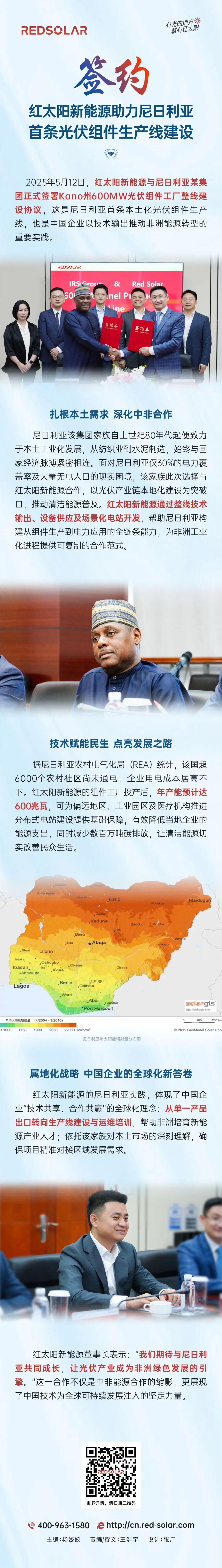 600MW!红太阳签约尼日利亚首条光伏组件生产线