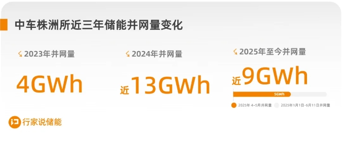单是2025年4-5月,中车株洲所高效并网超20个储能项目,总容量近5GWh。这一数字不仅远超其2023年全年并网总量,还占公司2024年全年储能项目并网总容量的35.71%,以及2024年储能总出货量(18GWh)的27.78%,呈现爆发式增长。