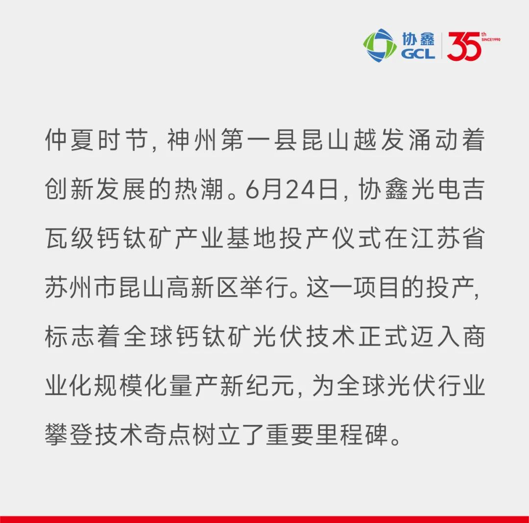 迈向新纪元!协鑫吉瓦级钙钛矿产业基地在昆山投产