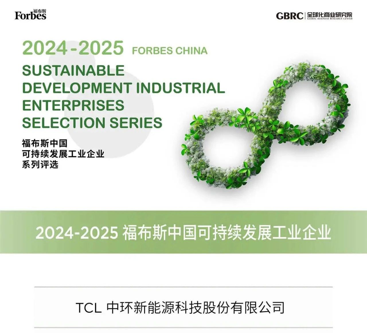 近日,福布斯中国发布“2024-2025福布斯中国可持续发展工业企业系列评选”榜单,TCL中环凭借其在绿色制造、技术创新及可持续发展的卓越实践,继2022年上榜后再度获此殊荣。