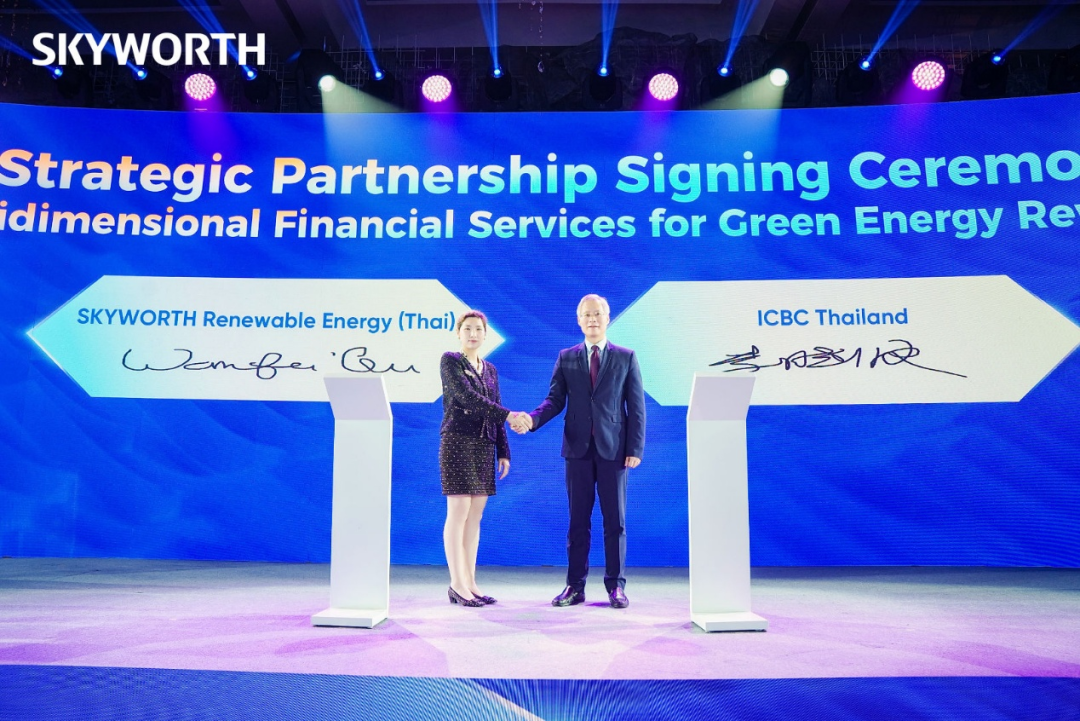 盛典上,创维光伏与中国工商银行(泰国)签署战略合作协议,双方将围绕跨境绿色金融、工商业太阳能解决方案、碳中和银行体系等领域展开深度合作,打通本地金融与中国技术之间的高效通道。