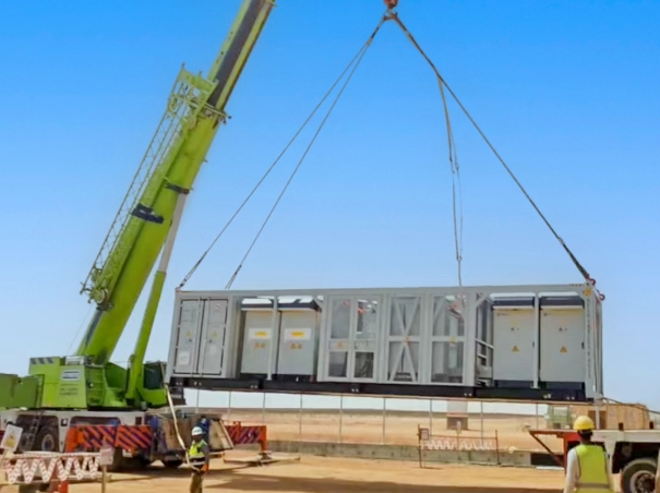 产品拥有优异的环境适应性和可靠性、搭载智能风冷温控系统,即便在当地50℃的极端高温风沙环境下,仍能高效稳定运行。同时,产品可完美适配标准四十尺集装箱,不仅大幅提升运输效率,更为模块化快速部署提供了保障。