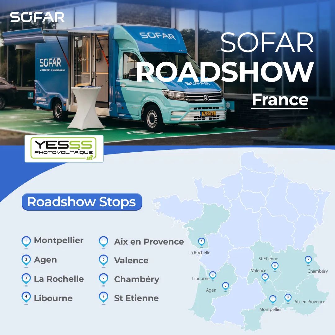 伴随着法国能源转型加速,首航路演深入法国8大核心城市,从地中海阳光之城蒙彼利埃,到古老工业城市圣艾蒂安,我们以本地化光储解决方案响应政策机遇,以先进光储技术满足当地绿电应用需求,助推法国能源绿色新进程。