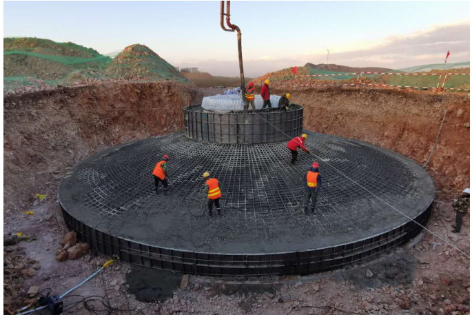 公司领导,公司各部门、广灵晨风项目部人员、总包方(上海电力设计院有限公司)、监理方(甘肃宏科工程监理咨询有限公司)及参建各单位对风机基础浇筑等关键工程建设质量高度重视,提前组织总包方、监理、远景能源、施工单位等相关方专业人员共同对施工方案进行了评审及安全技术交底;在浇筑工作开始前与当地政府领导沟通,对混凝土的供给及运输路线做好详细的部署,从而确保该项工作的圆满成功。