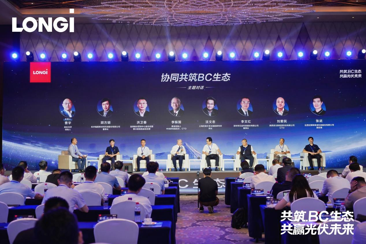 这样的BC生态创新合作案例还有很多。如何协同共筑BC生态也成了2025 BC生态创新峰会重点研讨的一大议题。来自上海交通大学、拉普拉斯新能源科技股份有限公司、深圳市石金科技股份有限公司、陕西星北新能源科技有限公司、宝钢股份、杭州福膜新材料科技股份有限公司、隆基绿能科技股份有限公司的嘉宾围绕如何协同共筑BC生态展开了讨论。他们表示,BC生态圈的打造需要上下游企业的共同努力,唯有以自主创新能力和中国原创技术为根基,让中国光伏从“制造高地”迈向“创新高地”,才能持续保持全球竞争优势。
