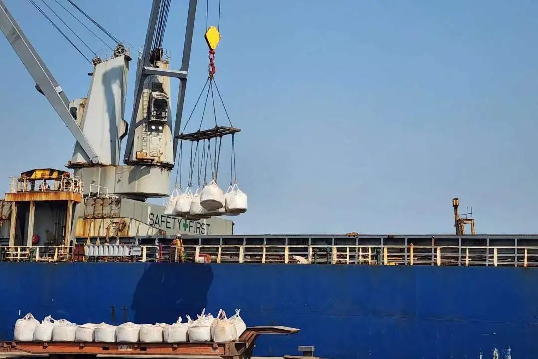 ▲满载着万吨锂精矿的散货船从贝拉港顺利首航