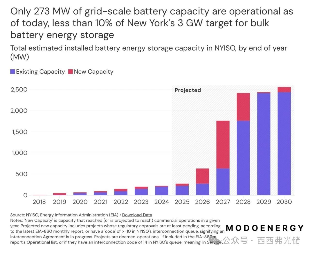 纽约州面临着严重的“资金缺失问题”(missing money problem),其2030年储能目标(3GW)自2019年设定以来,仅完成了273兆瓦。
