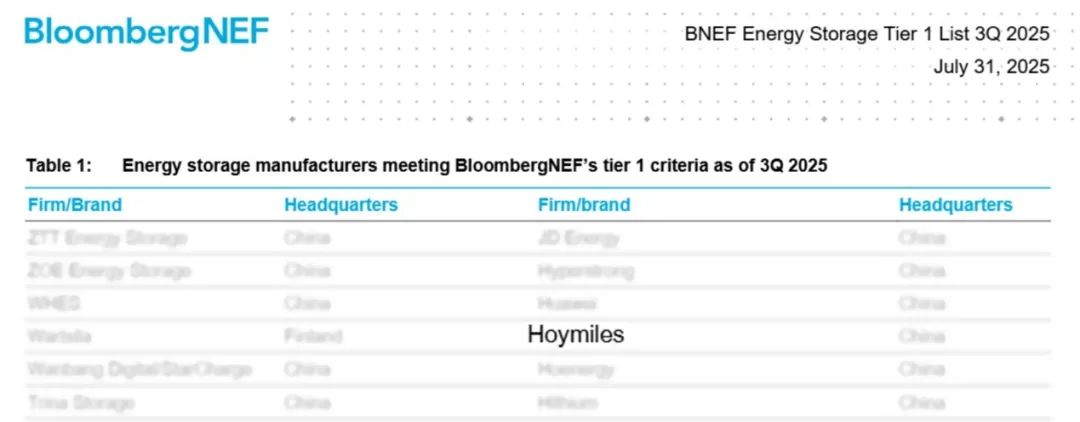 来源:BNEF Energy Storage Tier 1 List 3Q 2025