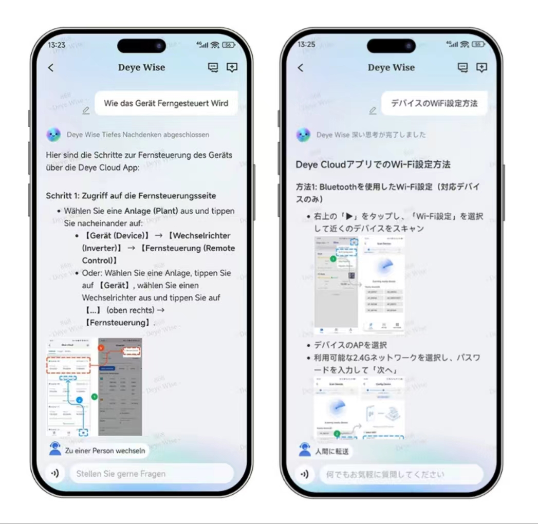 从通用AI的广泛覆盖,到垂直领域的深度赋能,德业始终致力于构建更懂用户需求的服务体系。如今,这一探索迎来重要里程碑——德业自主研发的智能客服应用 “灵思”(Deye Wise)正式发布。依托德业云App、Web门户等多元终端 ,“灵思”将面向全球120个国家的用户,提供7×24小时、支持30多种语言的即时响应服务。