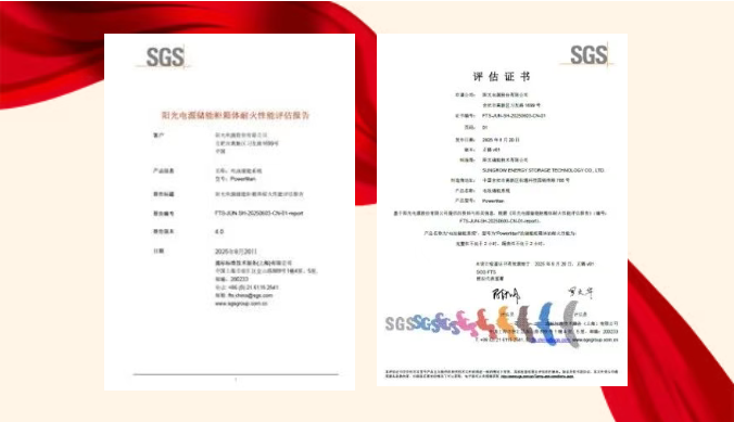 全国首张!阳光电源获SGS储能柜耐火性能评估证书