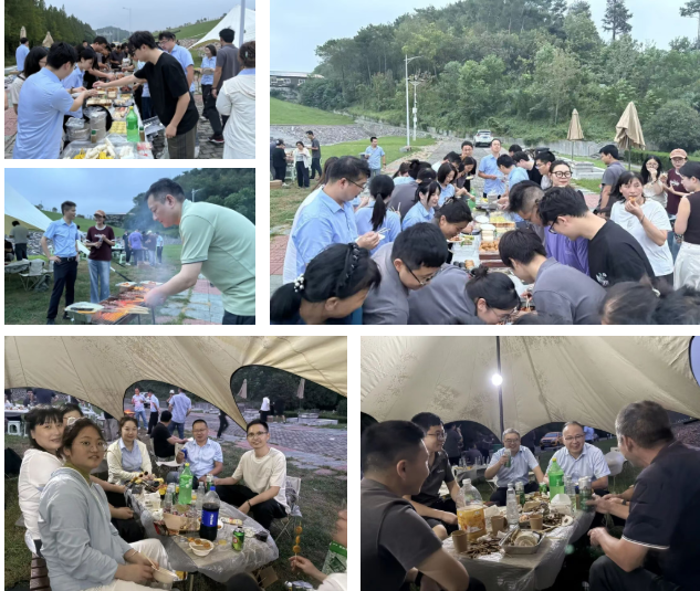 首日傍晚,星空下的烧烤派对热闹开启!烤炉旁青烟袅袅,大家分工默契,香气在山野间流淌,同事们围坐畅谈,趣事分享引得阵阵欢笑。