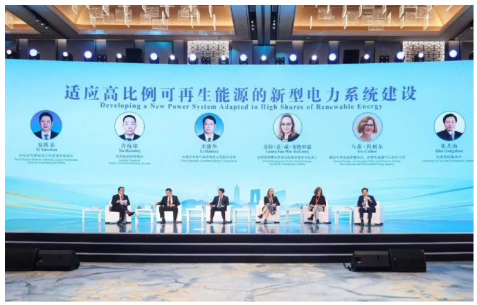 在当日“适应高比例可再生能源的新型电力系统建设”高端对话中,朱共山分享了企业在构建新型电力系统领域的创新实践与前沿见解。