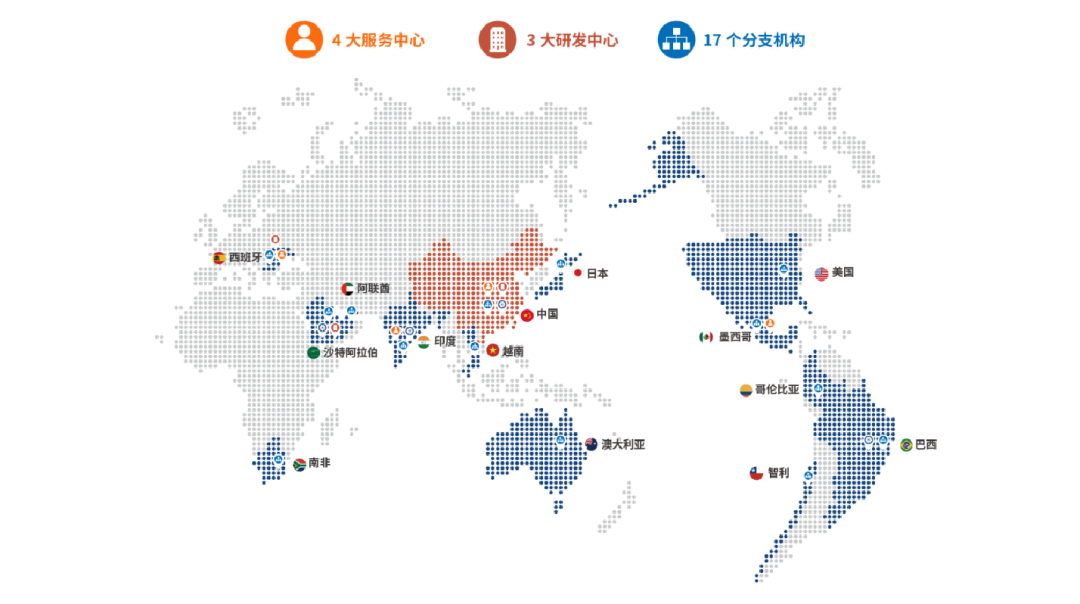 中信博始终秉持“以客户为中心”的理念,持续构建和完善全球化运营与服务网络。截至目前,公司已在全球范围内设立了4大服务中心、17个分支机构及多个海外智造基地,极大强化了公司的全球资源协同与本地化服务交付能力,确保了企业全球范围内高质量全生命周期服务能力。