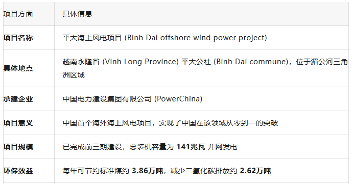 中国电建在越南永隆省承建的平大海上风电项目,是中国企业在海外的首个海上风电总承包项目,标志着中国海外风电建设实现了从“零经验”到成功运营的突破。