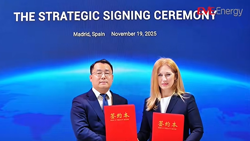 11月19日,2025年西班牙马德里能源与环保展现场,亿纬锂能与瑞典领先的储能系统集成商Vimab BESS AB正式签署为期三年的谅解备忘录,携手共同推动北欧地区1.48GWh储能项目的部署,助力欧洲能源转型。