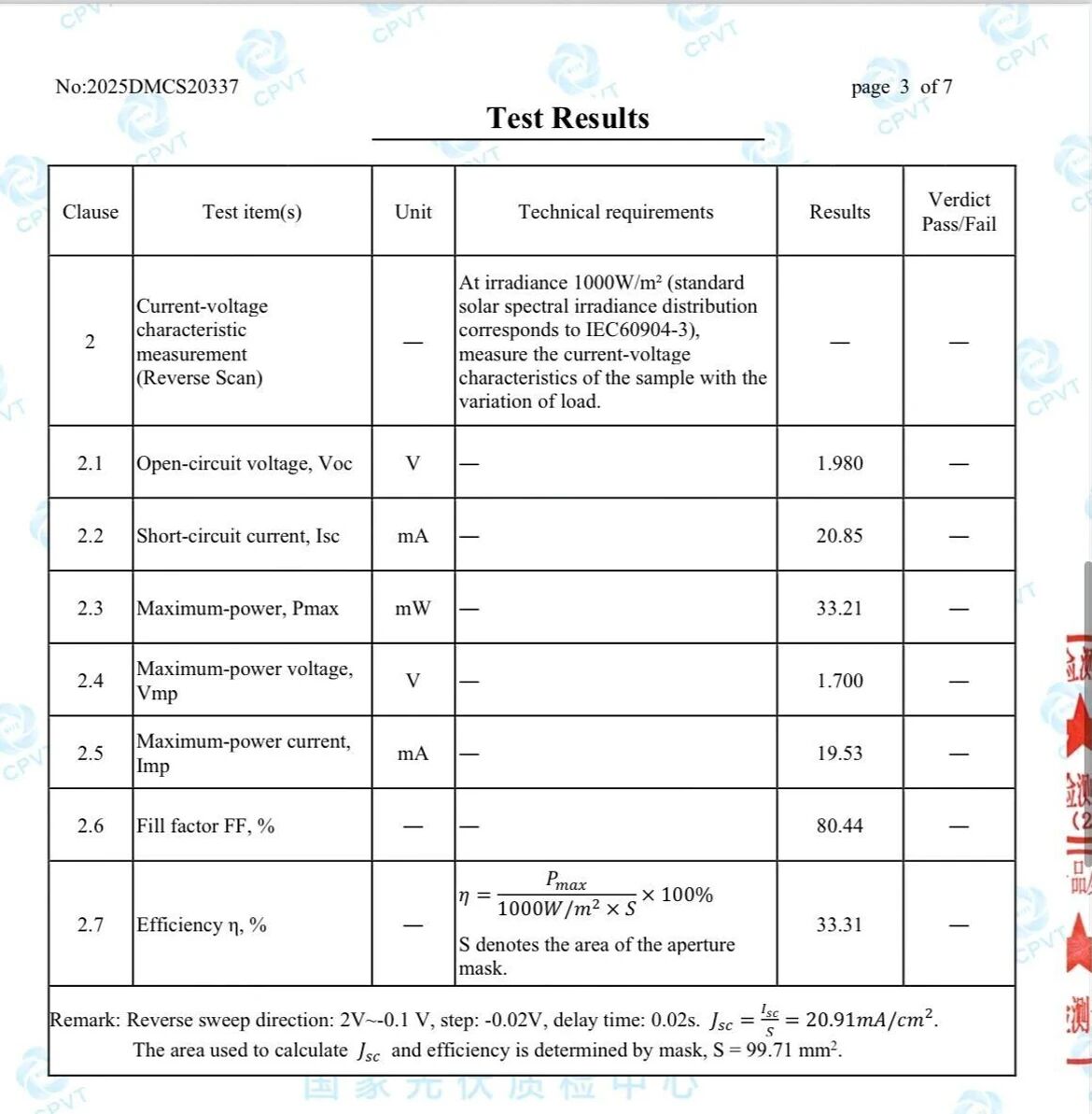 全球新高!协鑫集成钙钛矿叠层电池认证效率突破33.31%