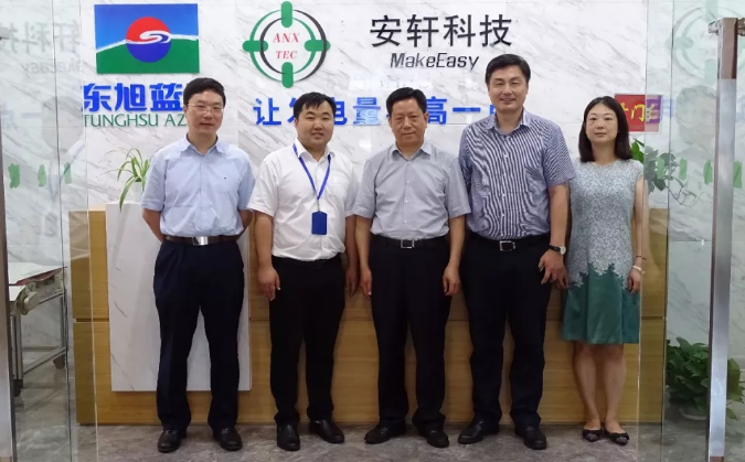 在安轩科技王军总经理的陪同下,刘书记一行首先参观了公司内的光伏智能运维解决方案展厅。王总介绍了相关设备及公司目前技术情况。刘书记对安轩科技在光伏智能运维行业取得的成绩表示赞赏,并对安轩科技推动人工智能、物联网和大数据与光伏产业的深度融合给予了充分肯定。
