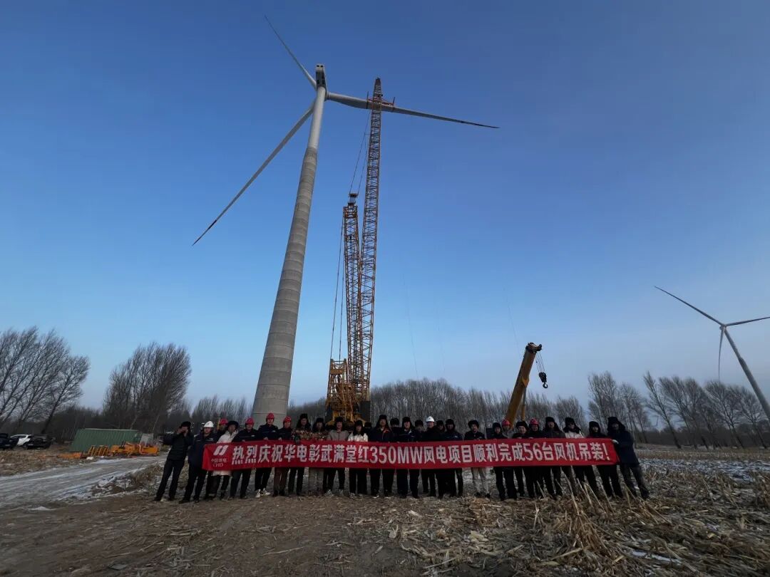 在辽宁彰武满堂红项目中,面对东北严寒气候与复杂地质条件,项目团队应用了基于低温材料研究与结构动力学分析的机组强化设计,确保了机组在-30℃极端环境下的运行可靠性。同时,依托在大型构件运输与装配方面的经验,优化了吊装工艺,实现了冬季施工效率与安全双提升。