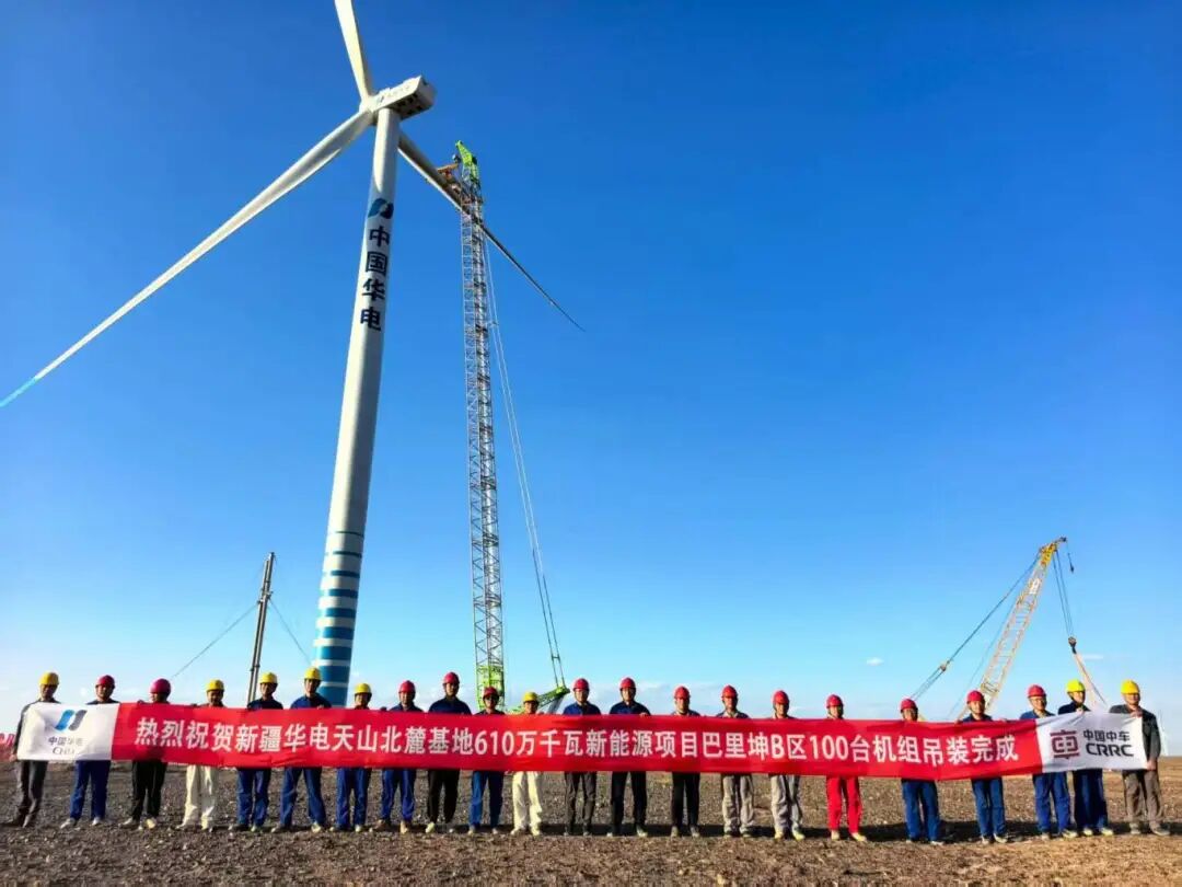 项目交付团队通过“精筹划、强协同”的科学管理,动态优化全国乃至海外项目的资源调度。针对高寒地区有效施工期短的矛盾,提前协调供应链,确保塔筒、叶片等大部件在窗口期前精准到位。在新疆华电天山北麓基地610万千瓦的所有包段中率先完成100台10兆瓦风电机组吊安装任务。再现“高铁品质”和“中车速度”。