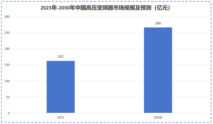 2023年至2030年,国内高压变频器市场规模预计将从162亿增长至266亿,年复合增长率达7.34%,比全球增速(2.83%)都要高。