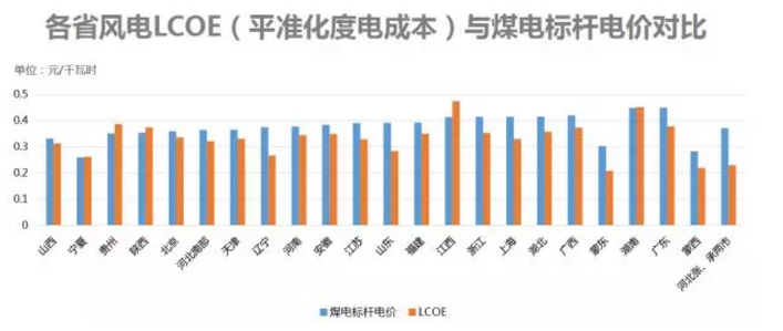 (前置条件:解决弃风限电,去除各类非技术性成本。)
