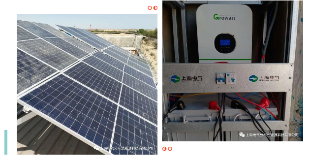 分布式公司建设的光伏电站,采用离网运行的方式,主要设备包含14.4kWh额定容量电池储能、8.28kWp光伏以及3.5kW的淡化装置。通过光伏和储能电池为苦咸水淡化装置供电,使盐水脱盐淡化,达到饮用水指标。
