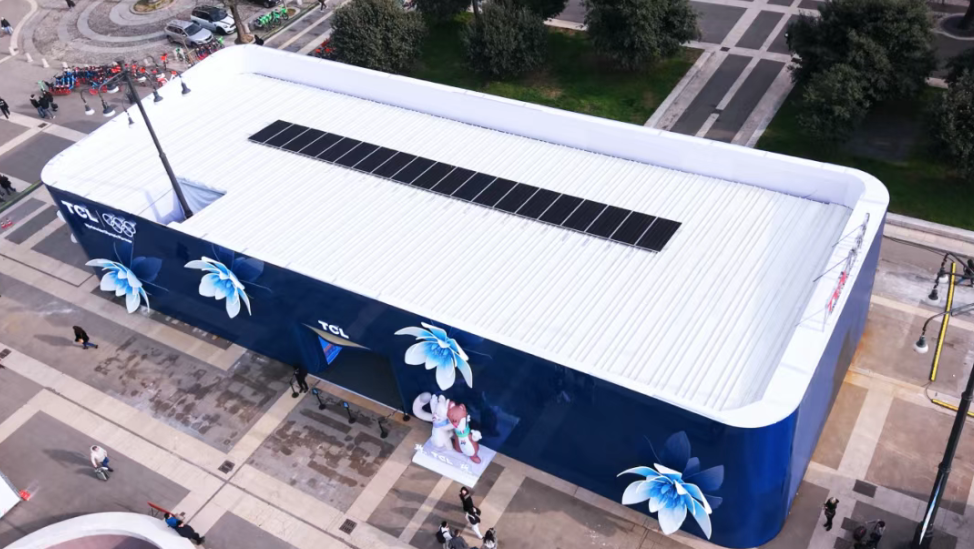 The exterior of the showcase is crafted from blue mirrored glass, inspired by the edelweiss of the Alps. This design seamlessly merges natural imagery with a technological aesthetic, centered around the concept of "It's Your Greatness," symbolizing the spirit of courage and resilience. Behind this dynamic and radiant presence lies the green energy support of TCL PV Tech—the rooftop is equipped with its innovative, high-efficiency photovoltaic modules and energy storage system. Through the practical application of integrated solar and storage, it continuously supplies clean power to the edelweiss-inspired exterior installation, allowing green energy to illuminate the Milano Cortina Olympic Games. This initiative actively embodies the green Olympic philosophy, infusing the Winter Olympics with sustainable, green momentum.