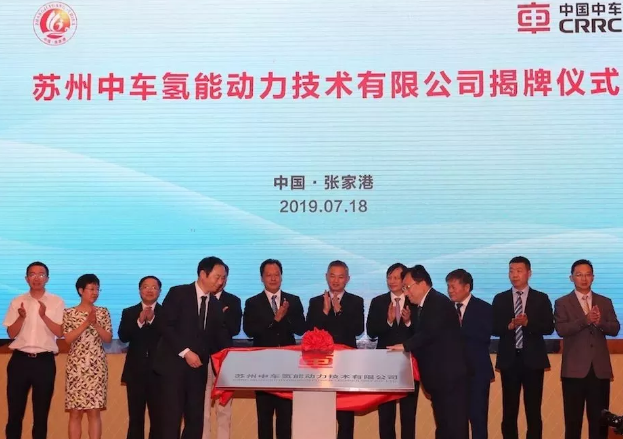 市委书记沈国芳和中车产业投资有限公司董事长胡洋共同为苏州中车氢能动力技术有限公司揭牌。