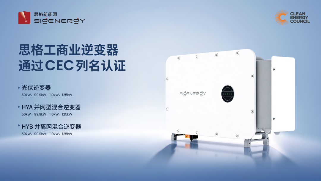 2026年2月,思格工商业逆变器正式通过澳大利亚CEC(Clean Energy Council)列名认证,标志着思格在澳洲市场实现从户用到工商业系统的能力延伸。