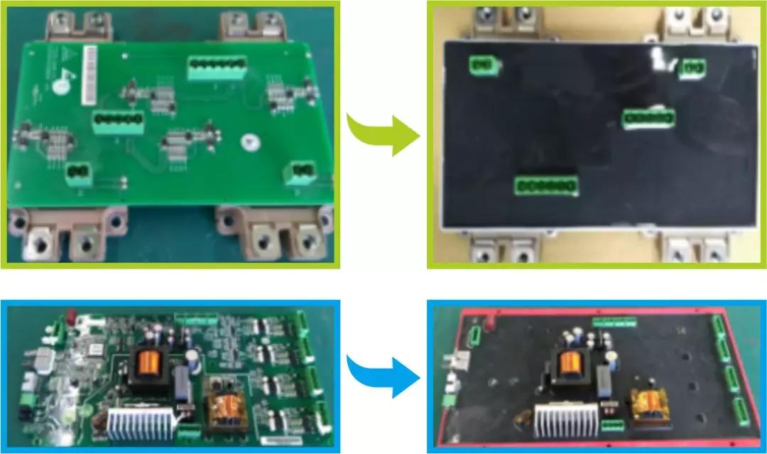 特变电工新一代SVG产品采用军工级单板灌封工艺,彻底隔离电子器件和外界腐蚀性盐雾的接触。同时增强了器件的散热均衡,大大提升设备的稳定性,完全具备海上风电,潮湿,盐雾等恶劣环境的应用,最终实现长期并网的可靠品质,满足国网文件中在恶劣环境下采用灌封或者涂胶技术的要求,对防止无功补偿设备损坏起到了有效的作用。