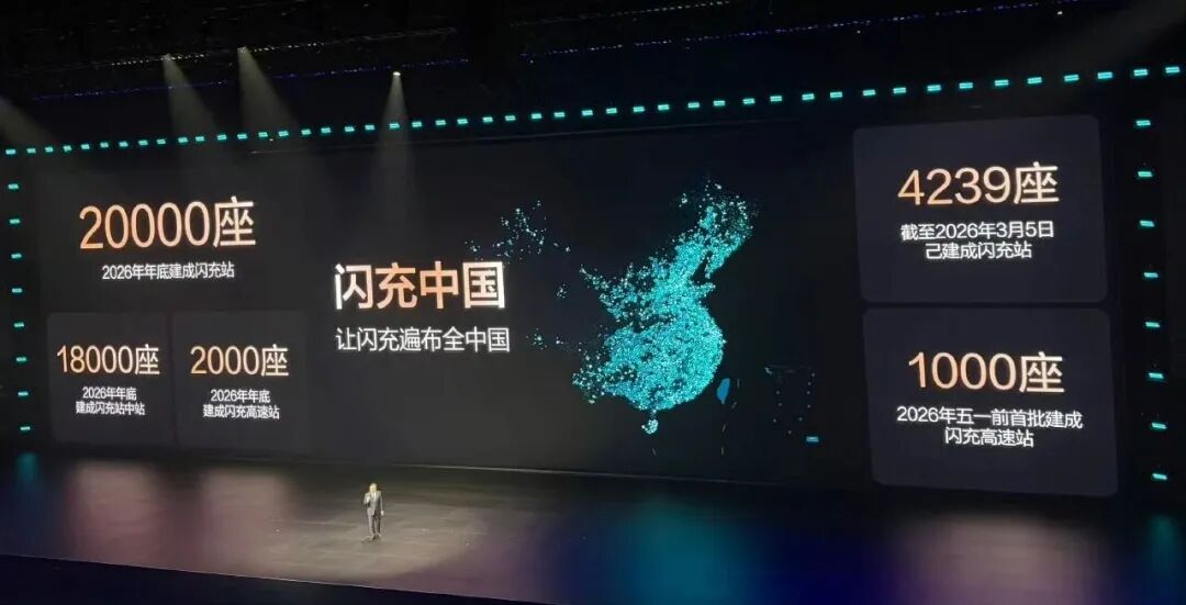 在发布会上,王传福在现场还提出“闪充中国”计划:2026年年底前将建成20000座闪充站覆盖城市核心区、高速路网等高频补能场景。