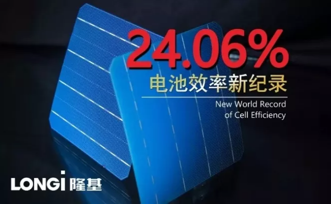 ▲ 隆基高效单晶电池转换效率刷新世界纪录