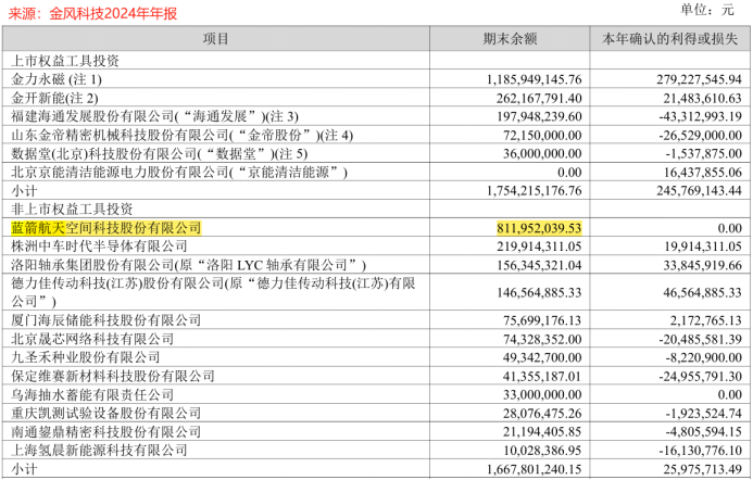 据金风科技2024年年报显示,公司对蓝箭航天投资的期末账面价值已经达到了8.12亿元,相比之前投入的1.5亿元来说,金风科技净赚金额达到了6.6亿元,投资回报率已经达到了441%。