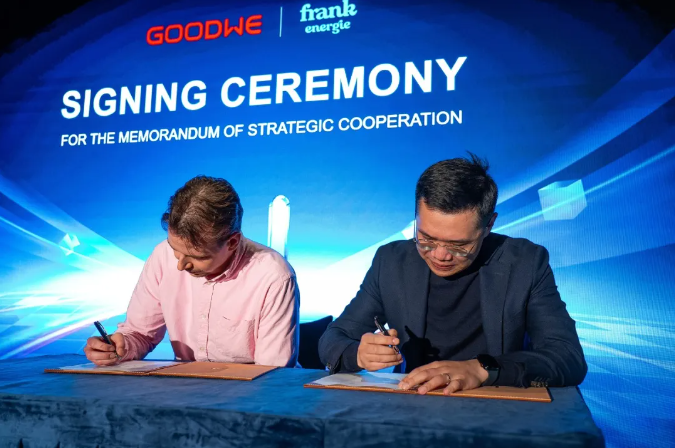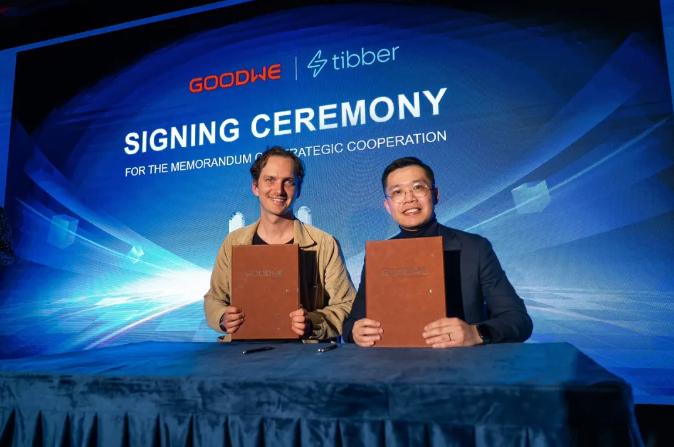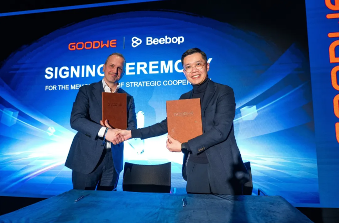 发布会现场,固德威与 BeeBop、Frank Energie、Tibber 等企业签署战略合作协议,将储能技术与虚拟电厂服务结合,助力家庭应对动态电价,加速智慧能源普及。