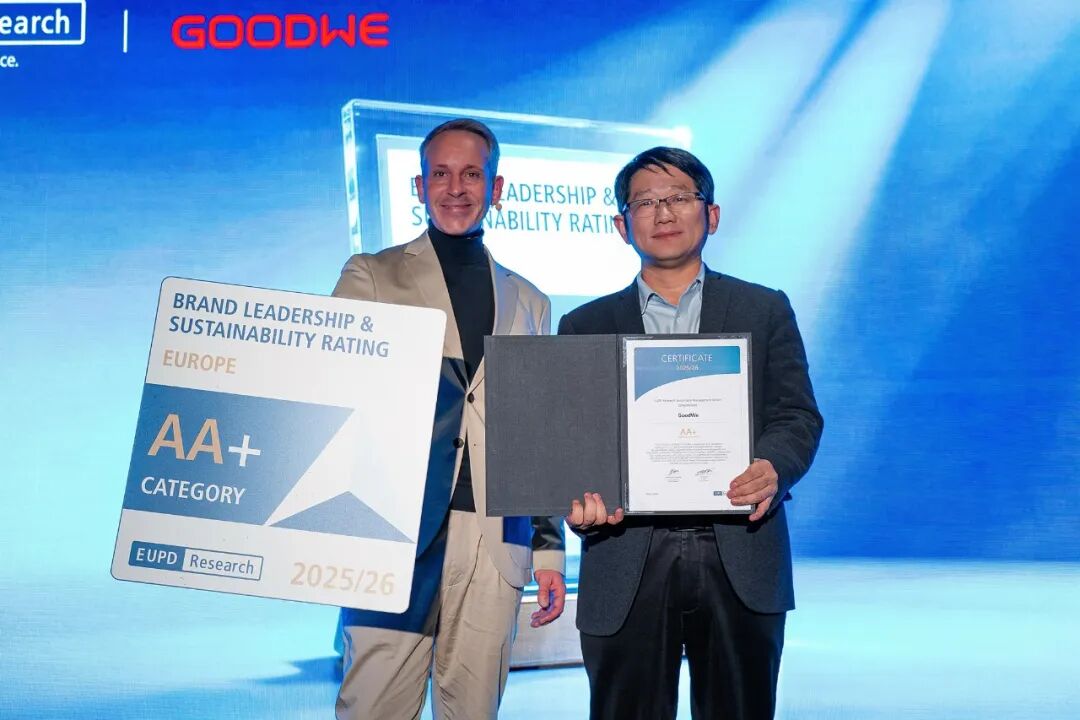 同时,EUPD Research 为固德威颁发 2025/26 欧洲品牌领导力与可持续发展 AA + 等级认证,彰显其行业实力与品牌影响力。