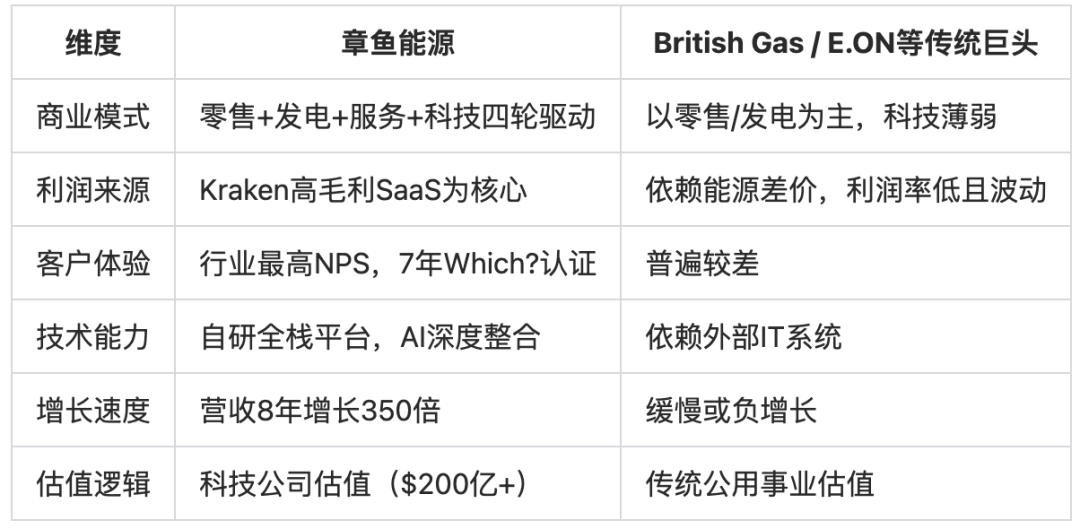 Kraken分拆后协同减弱:独立后的Kraken与零售业务的利益是否仍一致存疑。同时Kraken本身是否真的能达到“能源行业云原生操作系统”的叙事,尤其是在AI原生的新形势下,其营收结构、业务结构、技术架构是否能Hold得住80多亿美元的估值,我们在下一篇文章讲详细拆解和分析Kraken平台。