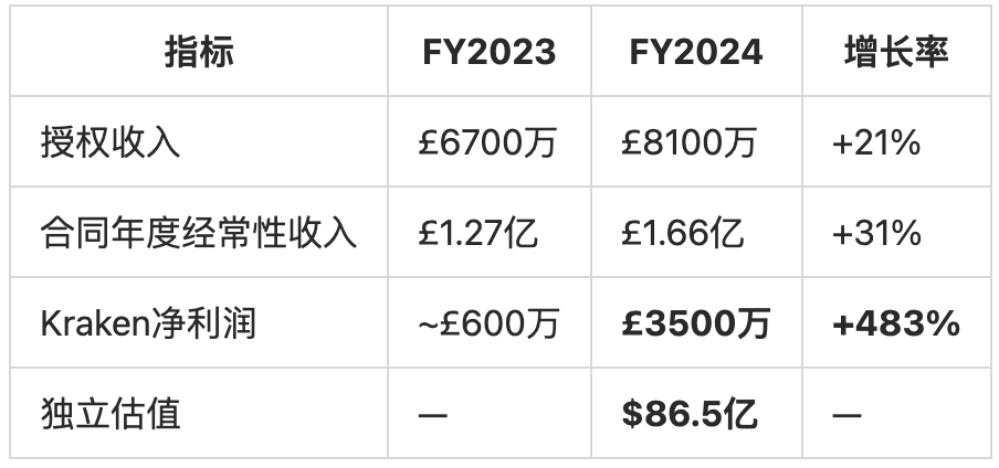 以80%软件毛利率估算,2024年1.66亿英镑合同收入对应约1.3亿英镑的毛利,而整个集团2024财年净利润仅8330万英镑,所以Kraken实际上是集团盈利的绝对核心。