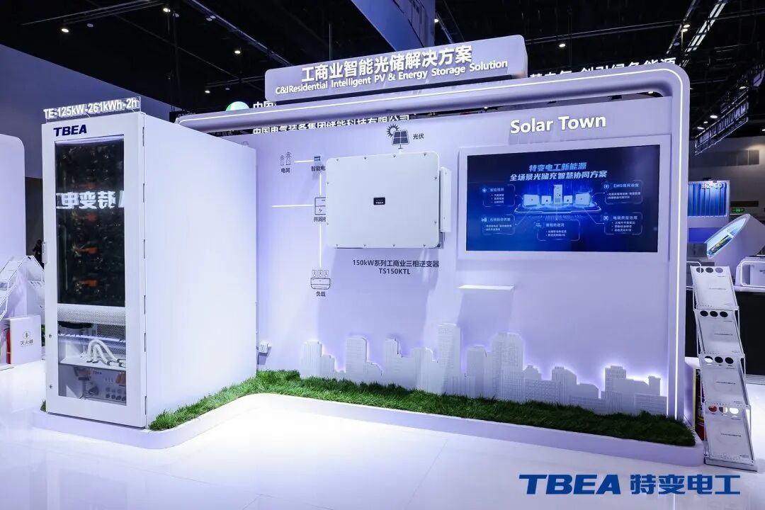 特变电工新能源此次参展,展示了完整、协同的智慧能源生态系统。展台上,BPS交直流一体式储能系统以其模块化预制、节省占地、快速部署的特点,展示了用户侧和电网侧储能的工程化最优解。组串式变流升压一体机则通过“量级群控技术”,实现了储能电站的毫秒级统一响应,提升整体效率。针对蓬勃发展的分布式市场,公司亦展示了全新的分布式光储融合解决方案,覆盖户用、工商业及微电网等多种场景,实现绿电的最大化自发自用与智能调度。