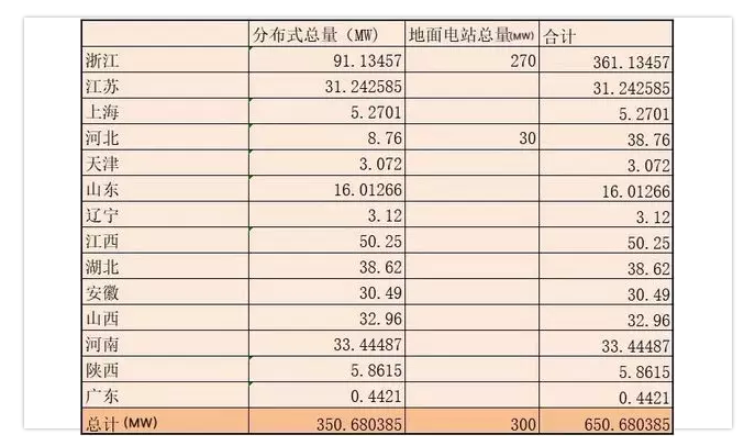 由上图可看到,在分布式竞价中标方面,正泰新能源参与了14个省、市地区的项目,其中浙江为91兆瓦;在江苏、河南、江西、湖北、安徽及山西等地,正泰参与并获补的竞标项目分别超过30兆瓦。公司参与的地面竞价电站,则分布于浙江和河北等地区。