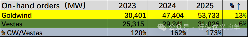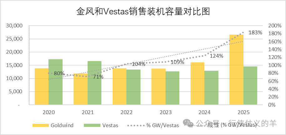 装机容量差距进一步拉大2025年金风高于维斯塔斯83%