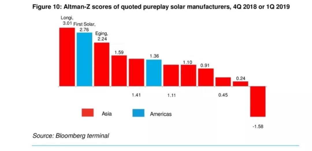根据彭博新能源财经(以下简称为“BNEF”)发布的《2019 Q1&2018 Q4光伏组件品牌可融资报告》显示,隆基首次在太阳能组件制造商BNEF Altman-Z得分榜上名列榜首。