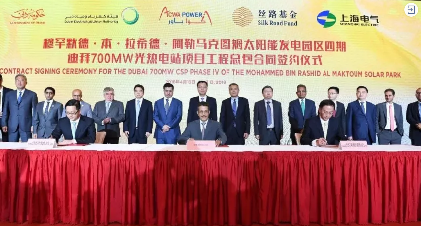 2018年11月7日,在中央政治局委员、上海市委书记李强,上海市委副书记、市长应勇,上海市委常委、常务副市长周波,国家商务部副部长王炳南的共同见证下,上海电气集团和西门子股份发电与天然气集团签订迪拜700MW光热发电项目发电主机设备合同。