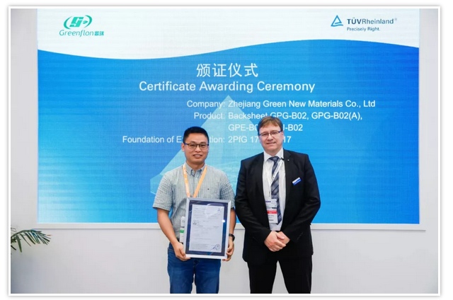 浙江歌瑞新材料背板产品GPG-B02、GPG-B02(A)、GPE-B02、GPJ-B02,获得TÜV莱茵2PfG 1793/11.17证书。